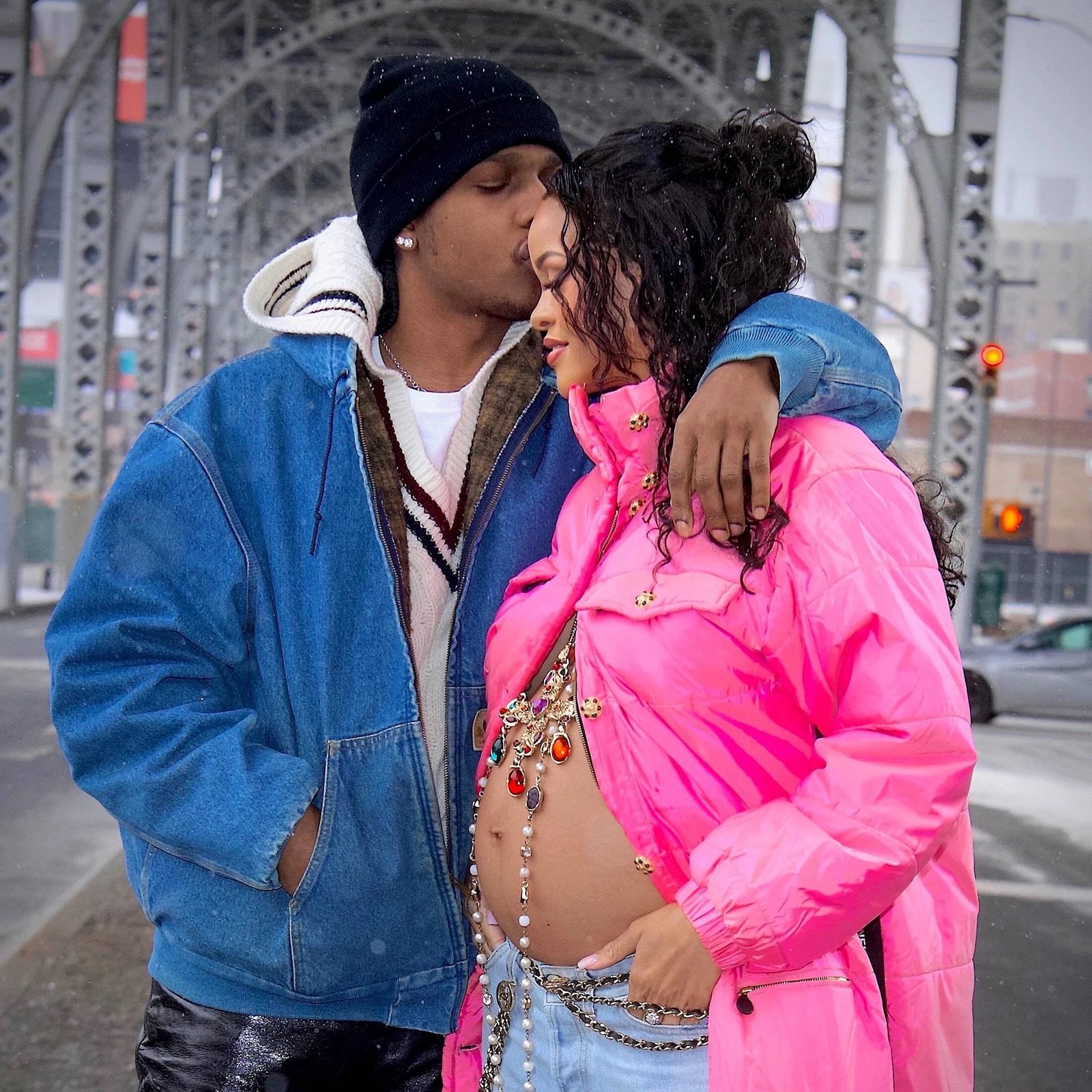 When she came out rocking the bump in a hot pink, Barbiecore puffer parka by Chanel, tons of jewels, and ribbed boyfriend jeans, the world collectively fell in love. She had an effortless, radiant glow and was truly committed to that NYC reveal outfit, even though it was snowing outside. And that was just the start – throughout the rest of her pregnancy, she wore some seriously jaw-dropping looks, like that sheer Dior lingerie get-up and a Gucci latex crop top.